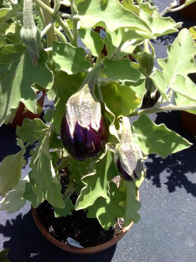 Would you look at that shiny eggplant? Wow! We have several potted, ready to enjoy! Dad wants an eggplant instead of a tie!