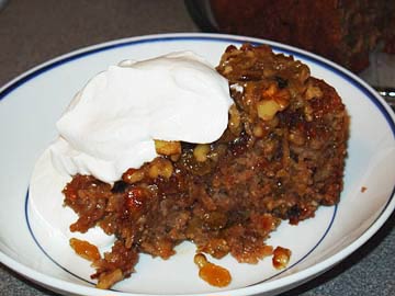 Bring to a boil and then add the remaining raisins, 1 cup grated apple and remaining walnuts.