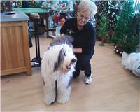 Picking up his 1st prize gift certificates from the 2010 Walter Knoll Florist Pet Costume Contest!