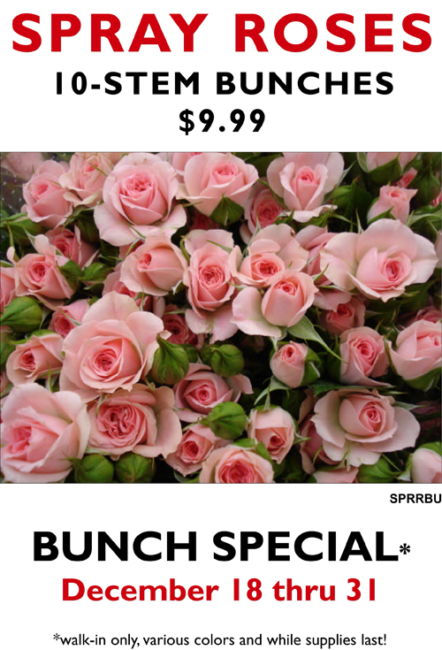 Our wholesale bunch special, available to all walk-in customers at any Walter Knoll Florist flower shop, is spray roses.