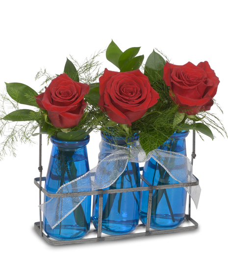 Simple and sweet the Bright Red Roses really pop against the blue window caddy to create a gentle reminder of your love. I loved you then, I love you now and I’ll love you forever as a symbol of the three roses gives a wonderful sentiment to your sweet Valentine.