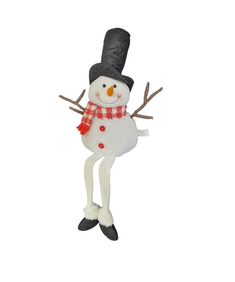 Add cozy winter charm to your holiday décor with Snowman Sitter, an irresistibly sweet seasonal accent designed to bring smiles all season long. This soft, whimsical snowman features a classic black top hat, cheerful stitched smile, twig-style arms, and a red plaid scarf for a timeless holiday look. His long dangling legs make him perfect for sitting on shelves, mantels, ledges, or tabletops—adding playful personality wherever he perches.