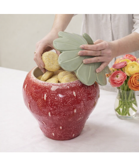 Functional and decorative, the Strawberry Cookie Jar brings sweetness to any space.