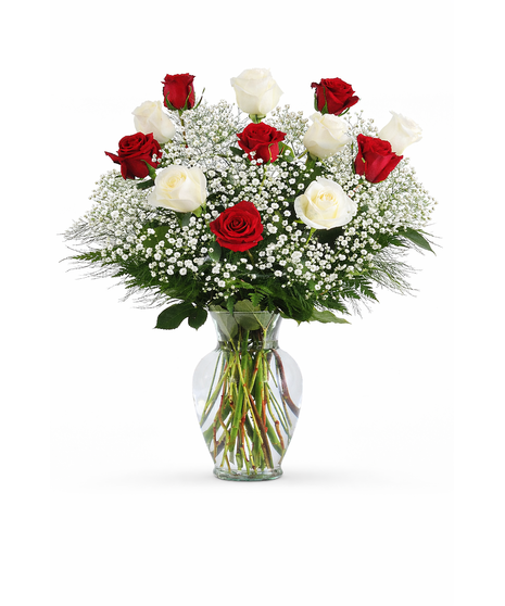 One Dozen Roses in Red & White